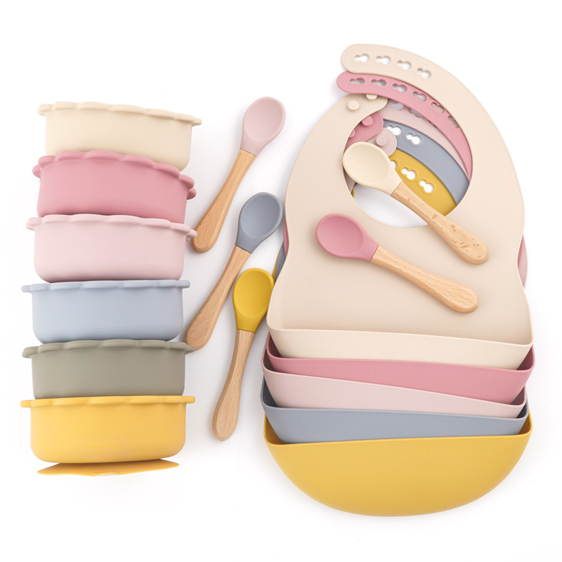 7pcs/Set Baby Silicone Children’s Tableware Waterproof Bib Food Grade Baby Dishes Plate Suction Bowl Newborn Sippy Cup And Spoon