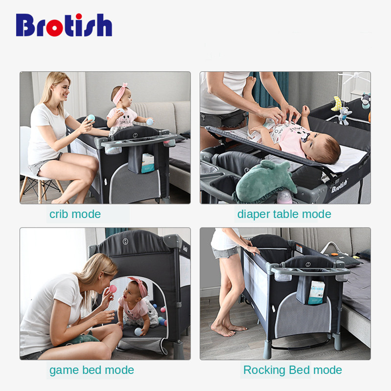 Multifunctional Baby Crib Foldable Baby Bed With Diaper Table Cradle Rocker Travel Game Bed Portable Baby Crib For 0-6 Years Old