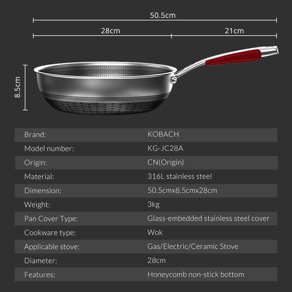 Be the first to review “KOBACH Frying Pan 28cm Kitchen Nonstick Pan 316L Stainless Steel Pan Nonstick Wok Electric Induction Pan” Cancel reply