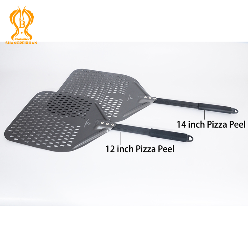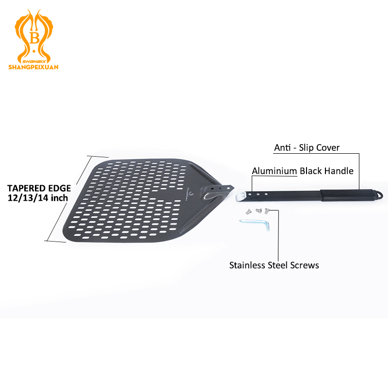 SHANGPEIXUAN 16/14/13/12 Inch Perforated Pizza Peel Rectangular Pizza Shovel Aluminum Hard Coating Pizza Peel Paddle Short Tool
