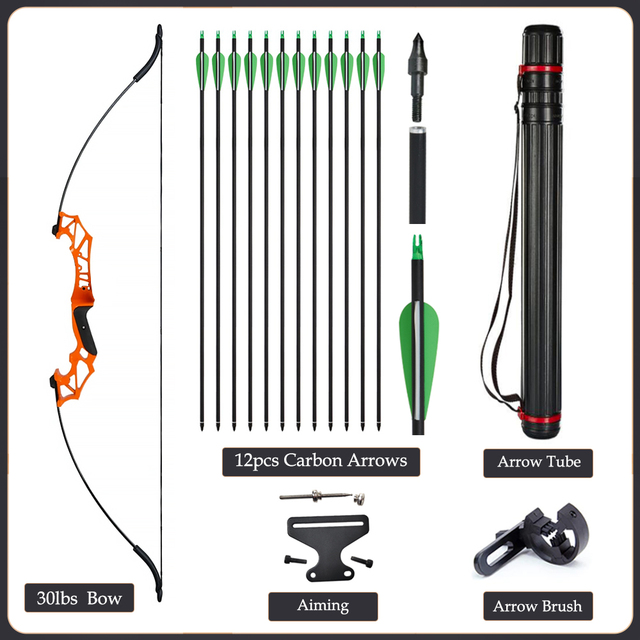 20/30/40/50lbs Archery Bow Recurve Take Down Straight Bow 12pcs Mixed Carbon Arrows Quiver Outdoor Sport Shooting Practice Bow